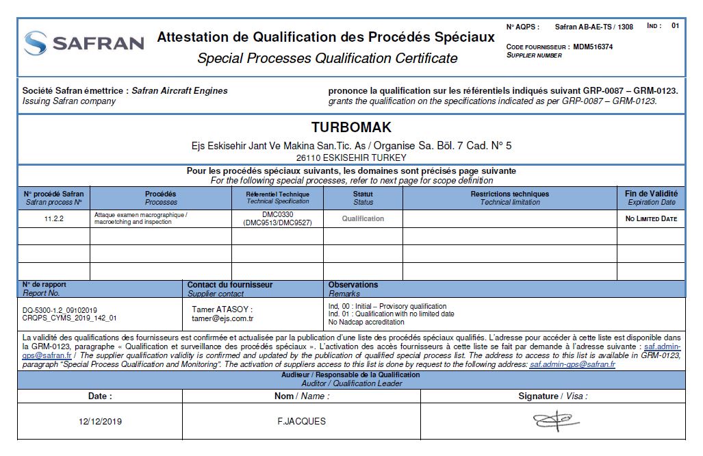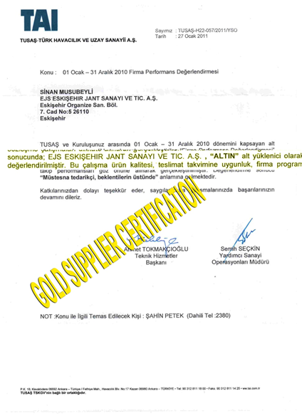 OUR QUALITY POLICY: We document the quality management system, ensure its continuity and continuously improve its effectiveness in order to ensure customer satisfaction, by reducing the proportion of inappropriate parts, in accordance with the requirements arising from national and international standards, in order to ensure timely and appropriate product delivery. Achieving company and unit goals in a team spirit based on the Total Quality philosophy, Determining preventive approaches that will improve our performance by reviewing our business processes with self-assessment, Increasing the efficiency of all our processes to a level that can compete at the international level in line with the continuous improvement approach, Encouraging innovative and creative approaches, technical We work with all our strength to become an exemplary organization in terms of quality in the Aviation sector in Eskişehir by managing our activities in an integrated manner with Environment, Occupational Health and Safety Management Systems in order to carry out trainings that will increase behavioral and behavioral competencies and to continue strong communication between units.